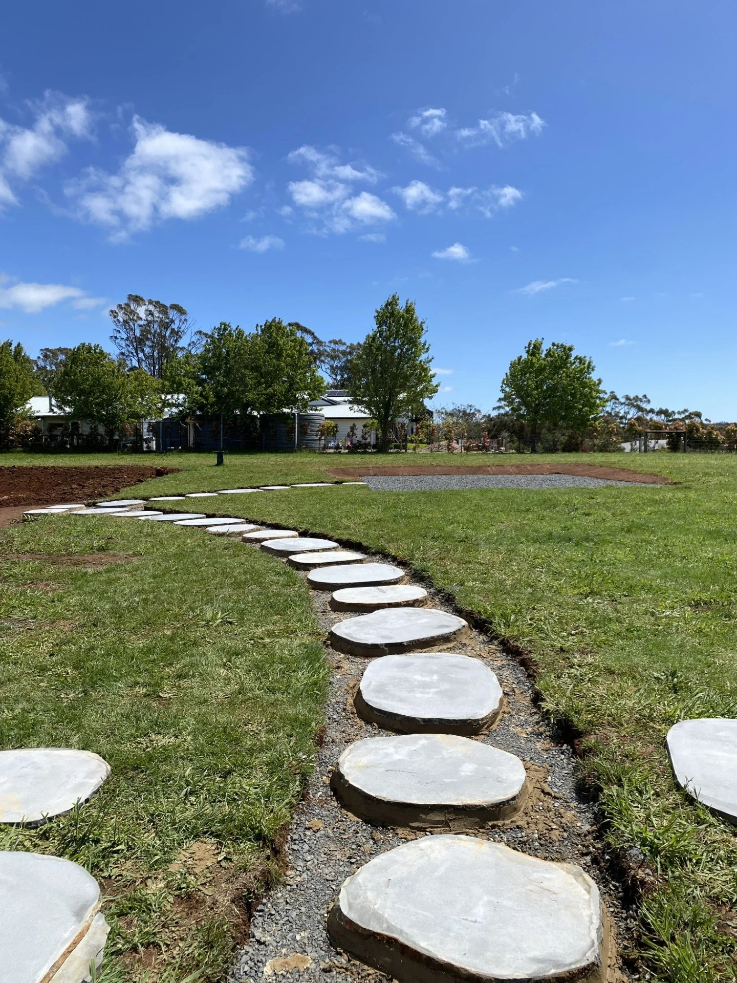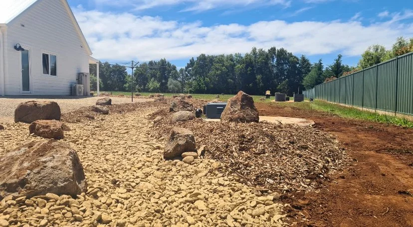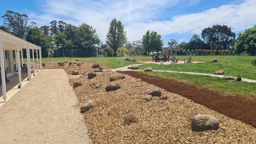 We carefully carveout a shared seating space designed for families to slow down and enjoy special moments together. A softly curving, puddle-paved pathway connects the seating area to the vegetable garden beds and the home, creating a natural flow through the landscape. Natural boulders were used to introduce height and depth, forming structure while providing the perfect conditions for layered planting of shrubs and grasses. The result is a space that feels grounded, organic, and inviting.